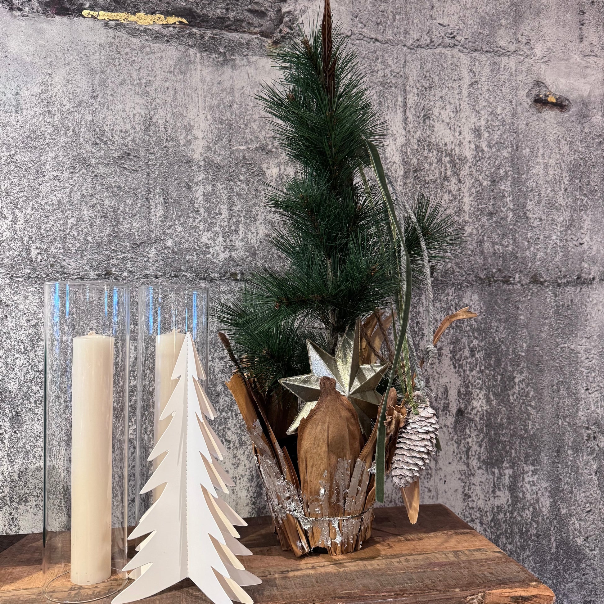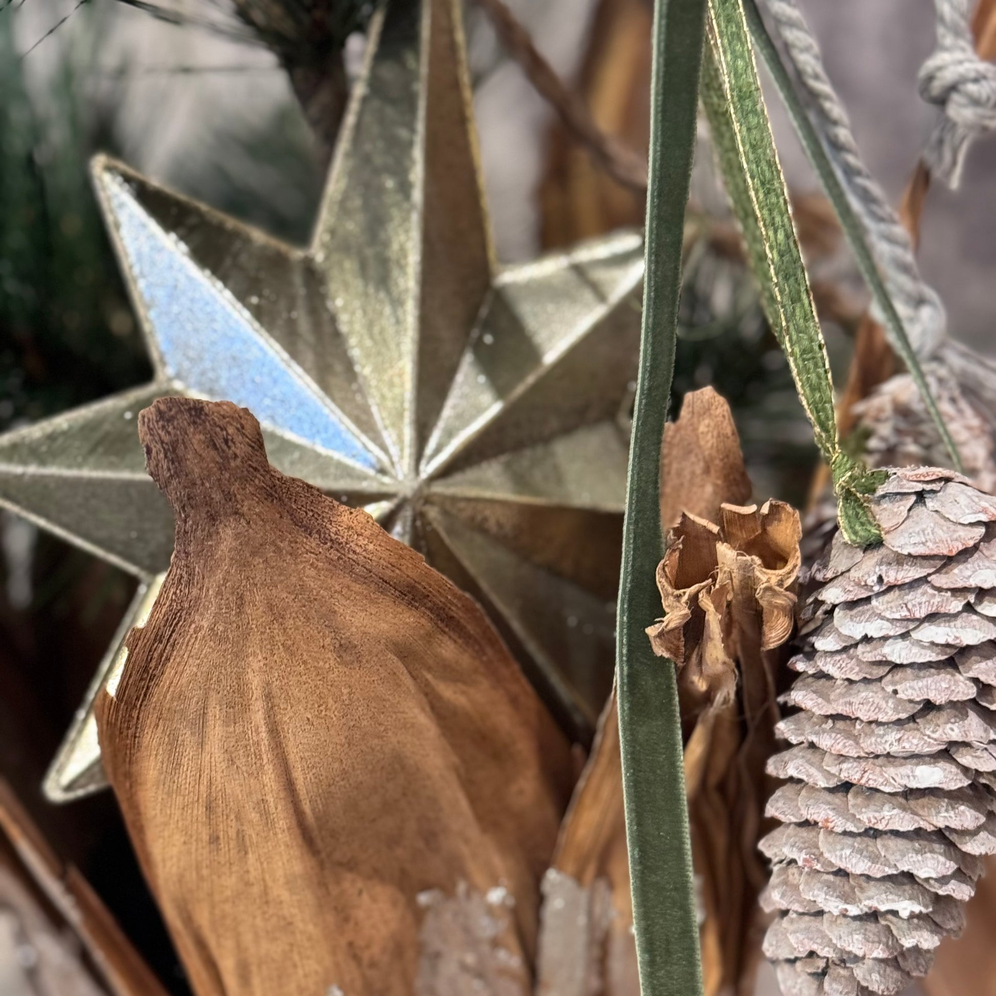 Ein kleines Künstliches Bäumchen wunderschönen mit Naturmaterialien Dekoriert.