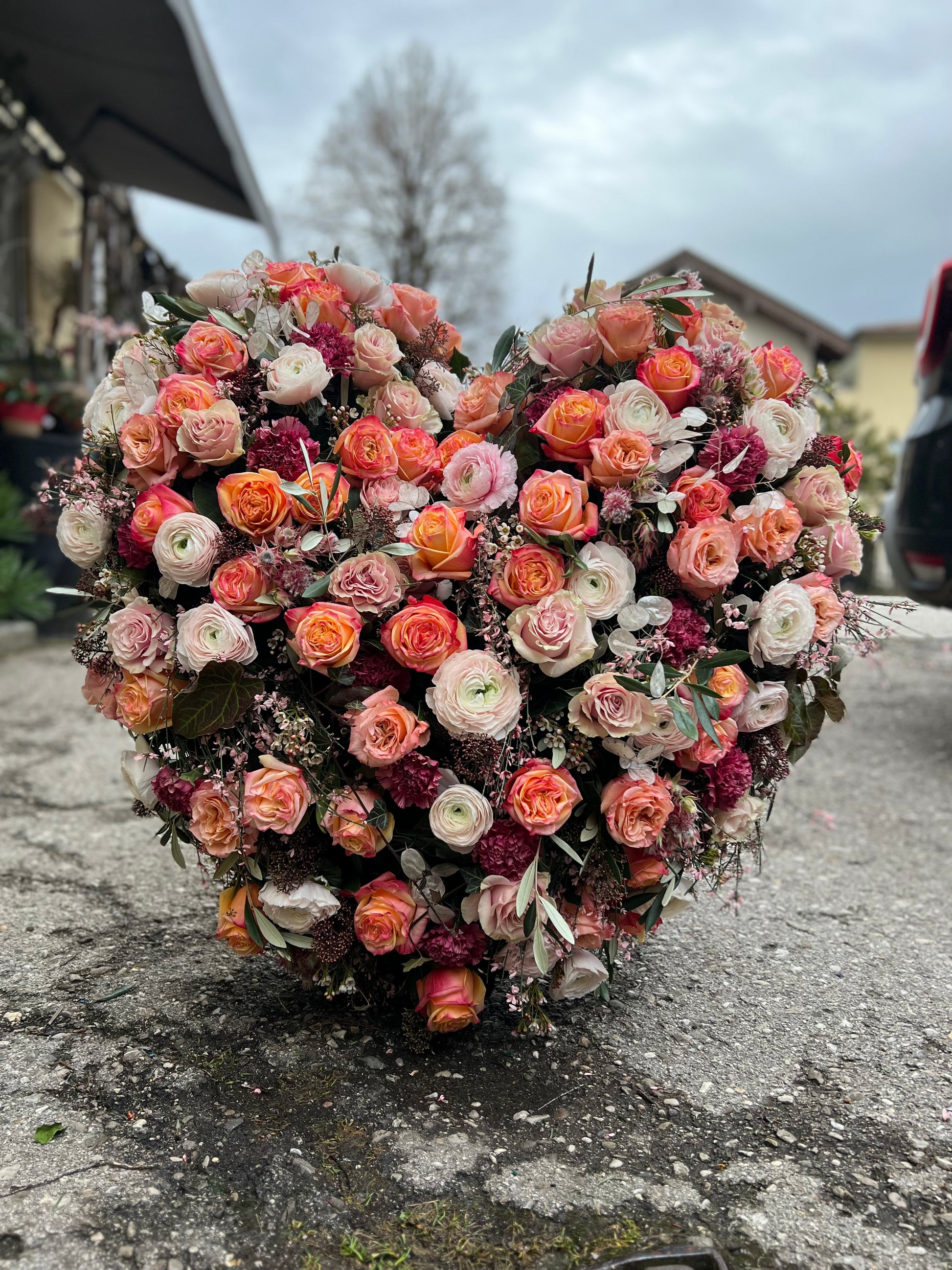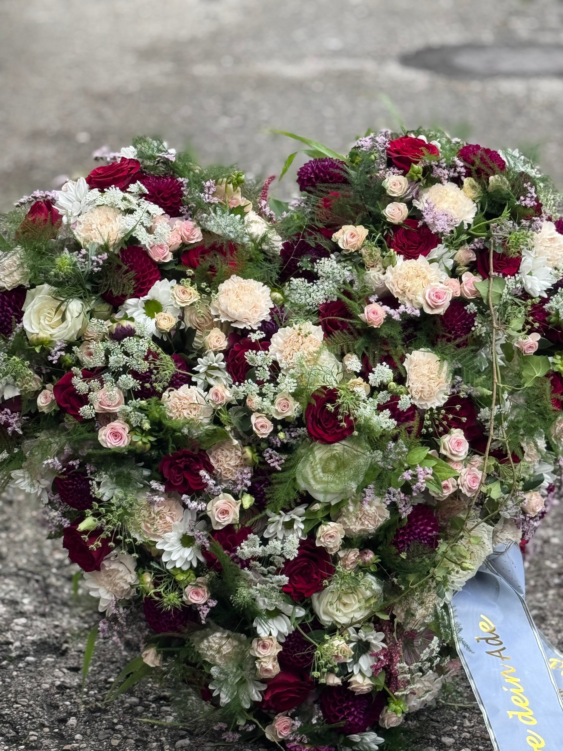 Ein Herz ist eine besonders liebevolle und symbolische Geste, um einem Verstorbenen die letzte Ehre zu erweisen. Das Herz steht für Liebe, Verbundenheit und Erinnerung, und die Herzform wird oft gewählt, um die tiefe Zuneigung zu einem geliebten Menschen auszudrücken.